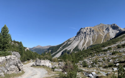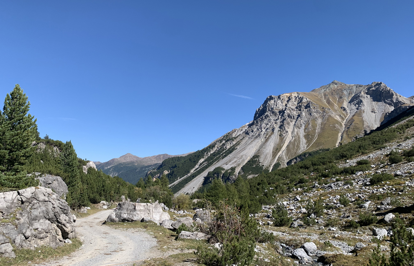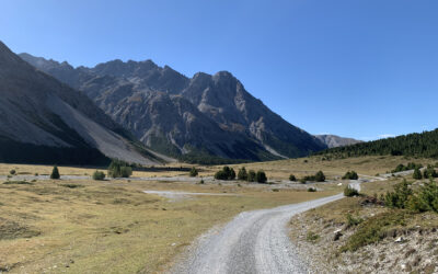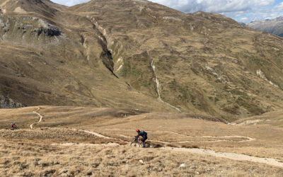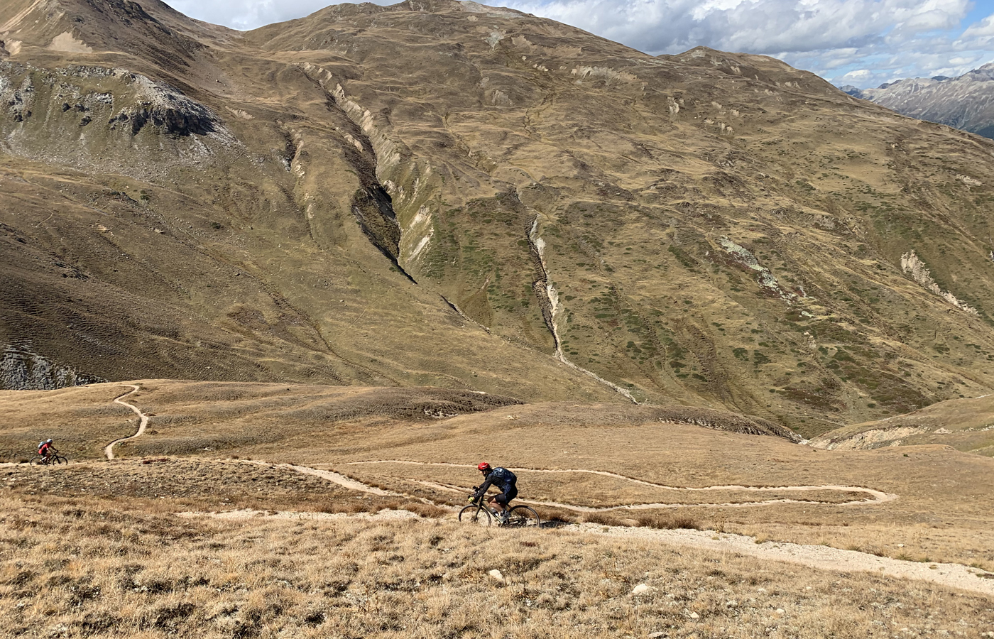 La discesa dal passo inizia su un sentiero con stretti tornanti per poi diventare una sterrata sempre più facilmente pedalabile che raggiunge l’Engadina in prossimità di S-Chanf. Il ritorno ad Ardez può giovarsi del treno o di una rapida discesa su asfalto (Seconda tappa: 75 Km x 1545 D+)