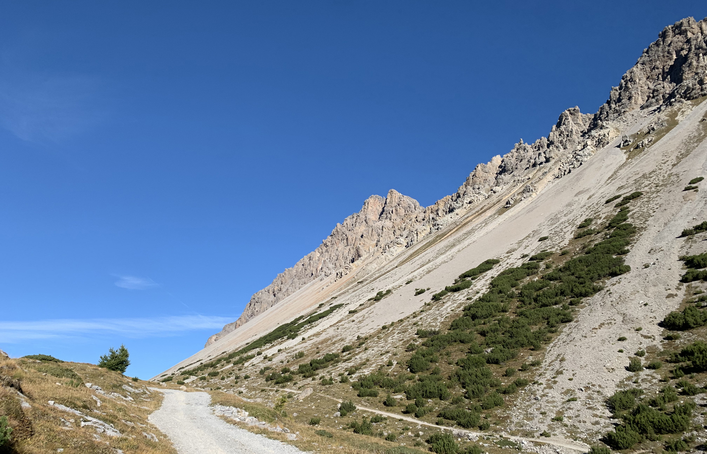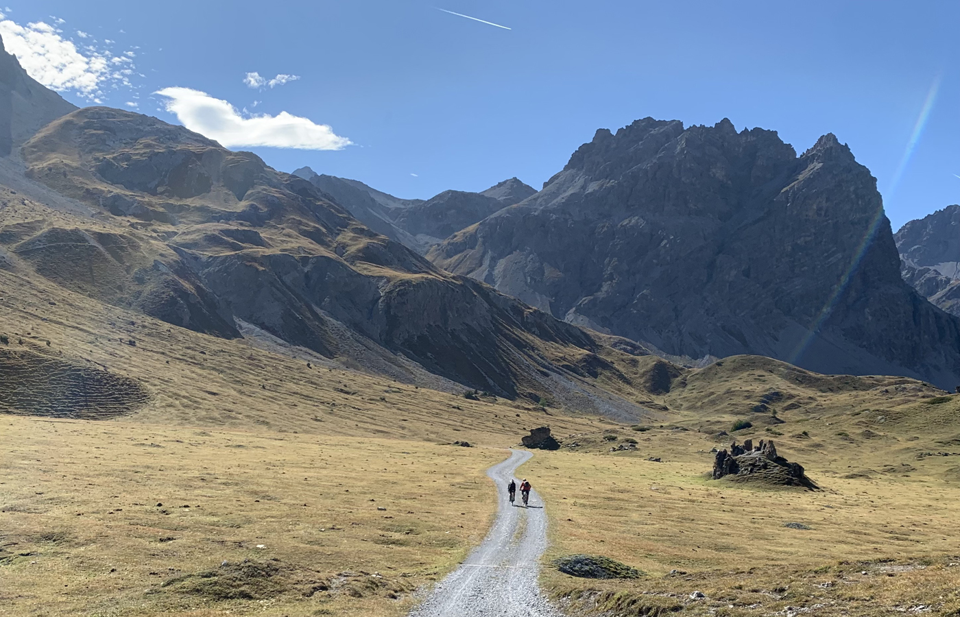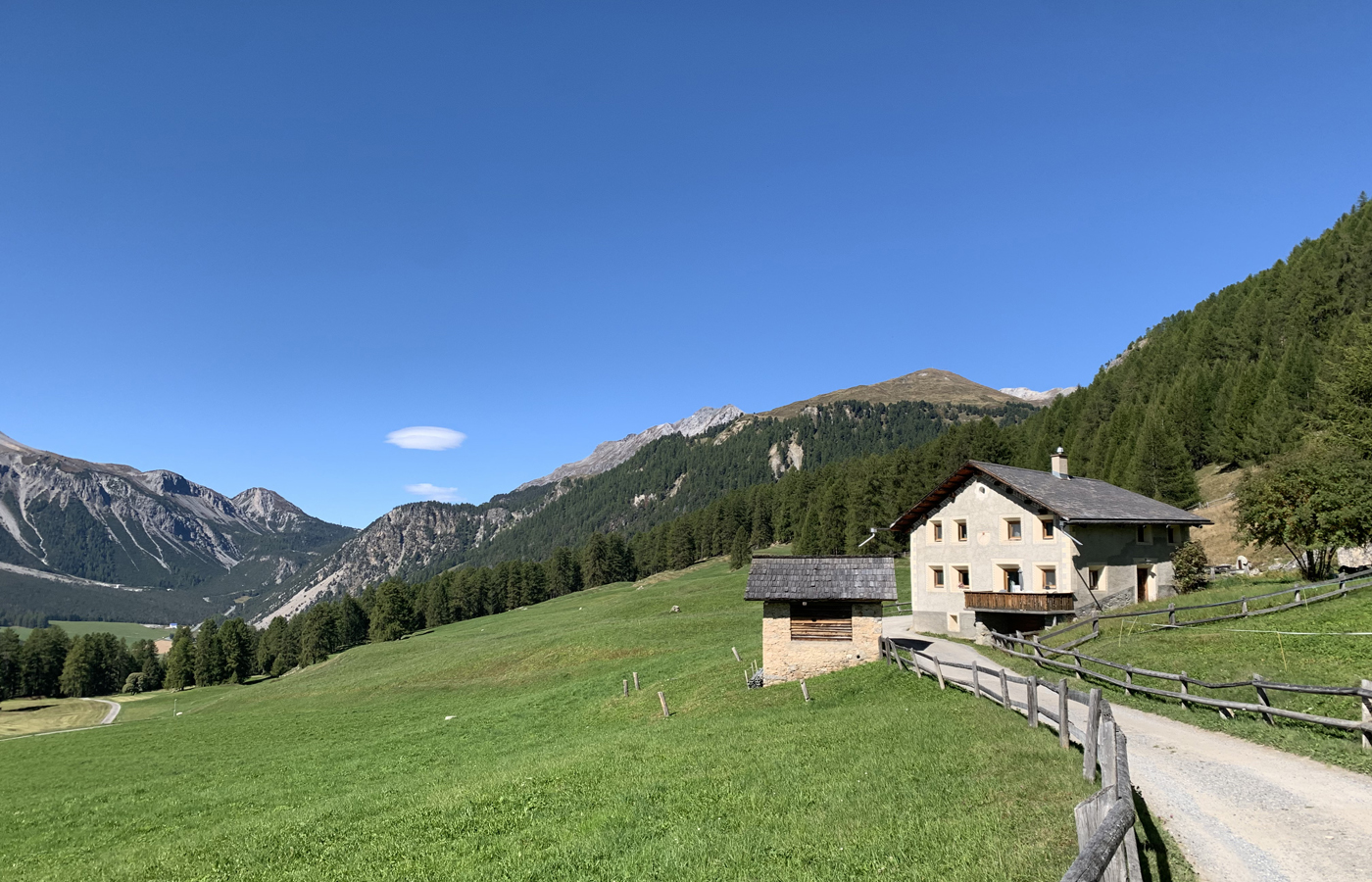 La discesa dal passo inizia su un sentiero con stretti tornanti per poi diventare una sterrata sempre più facilmente pedalabile che raggiunge l’Engadina in prossimità di S-Chanf. Il ritorno ad Ardez può giovarsi del treno o di una rapida discesa su asfalto (Seconda tappa: 75 Km x 1545 D+)