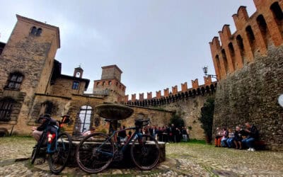 Le emozioni non sono finite; adesso siamo in pianura e pedalando su tranquille strade di campagna si arriva a lambire Fiorenzuola d’Arda. Ultima tappa, pedalando lungo un tratto di Via Francigena, il complesso cistercense di Chiaravalle della Colomba, fondata nel 1136 da San Bernardo da Chiaravalle. Splendido il chiostro coronato dal colonnine binate. Sempre su Strade Zitte si rientra a Fidenza, per chiudere l’anello.