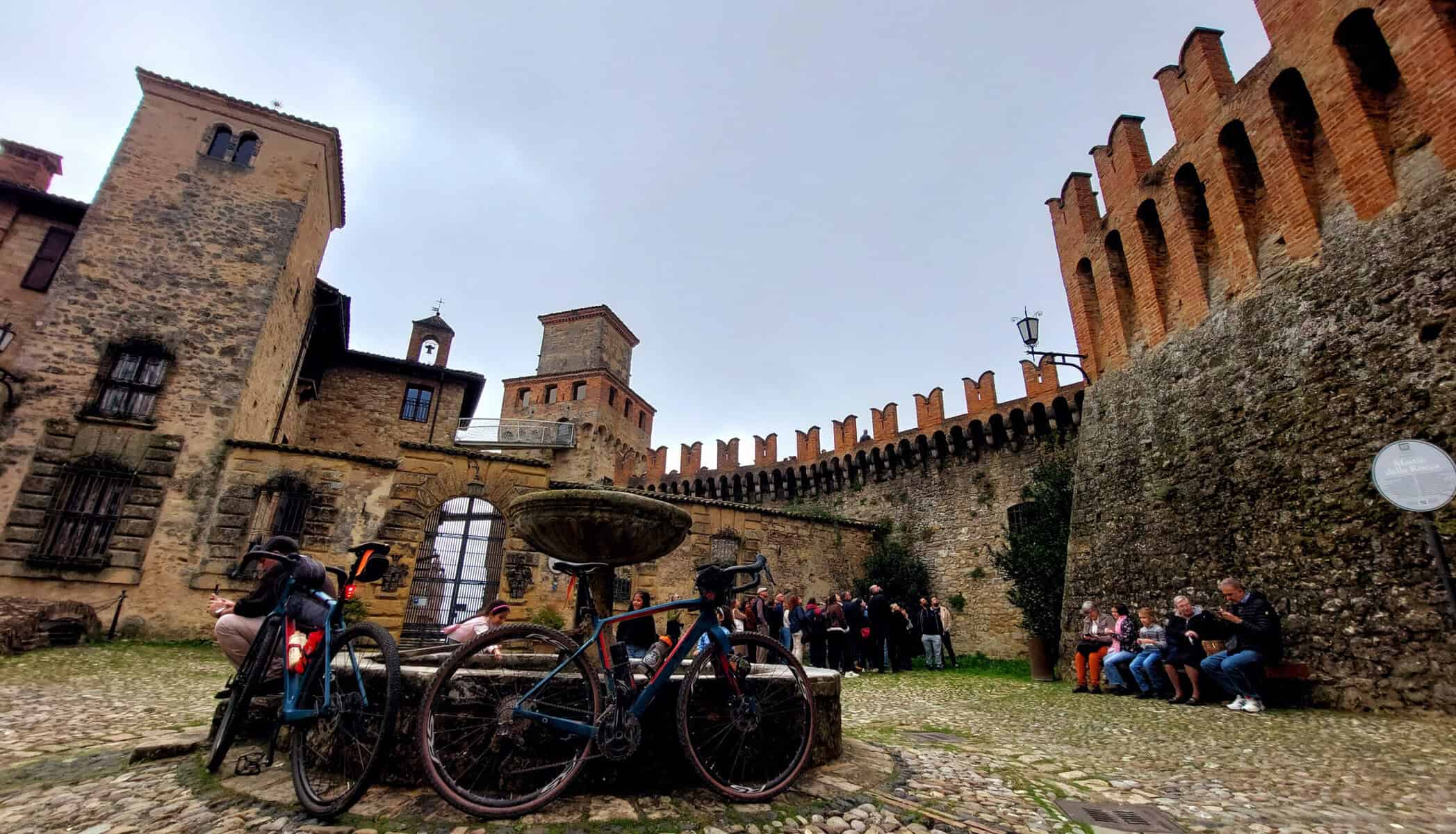 Si parte dalla stazione di Fidenza o dall’uscita dell’autostrada. Prima sosta al bellissimo Duomo, punto tappa della Via Francigena, ricco di magnifiche sculture medievali in facciata. Pedalando lungo la Ciclovia dello Stirone si raggiunge Salsomaggiore Terme, passando davanti ai magnifici stabilimenti termali in stile Liberty. Il primo scollinamento presso il Monte di Scipione conduce nella silenziosa Valle dello Stirone; attraversato il fiume si inizia a salire tra i vigneti, fino ad arrivare al borgo fortificato di Vigoleno, una meraviglia medievale rimasta intatta. Una breve visita all’interno delle mura è d’obbligo, prima di ripartire in direzione nord e scendere su una bella strada a tornati, per poi risalire, in un ambiente indimenticabile di vigneti e colline, sul crinale di Bacedasco Alto.